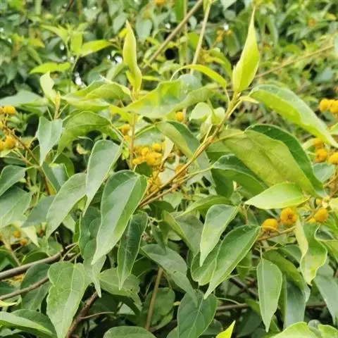 灌木或小乔木,高2-10米,植物体干后有零陵香味;小枝被星状短柔毛或变无毛,具颗粒状腺体。叶互生或有时近对生,长圆状倒卵形,长5-15厘米,宽2-6厘米,顶端急尖或尾状渐尖,下部渐狭,其部圆形或微心形,全缘或上部边缘微波状,上面无毛,下面中脉被星状毛或柔毛,侧脉腋有簇生柔毛,散生橙色颗粒状腺体;羽状脉,侧脉8-10对;基部有褐色斑状腺体4-6个;叶柄长0.5-3.5厘米;托叶卵状披针形,被星状毛,早落。