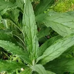 茎直立,中空,具肋棱,由上部分枝,分枝开展,被向下贴伏的柔毛。基生叶和茎下部叶长圆状披针形或披针形,长7-15厘米,宽2-4厘米,先端钝或渐尖,基部渐狭成柄,灰绿色,上下面均密生贴伏的短柔毛;茎中部及上部叶无柄,狄披针形,被灰色短柔毛。