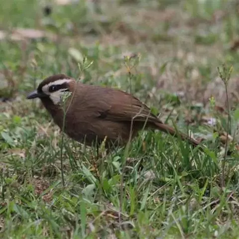 玉山噪鹛中等体型的褐色鸟类。白色长眉纹及髭纹显著;顶冠灰而具白色的鳞状斑纹;脸侧及颏褐色,…
