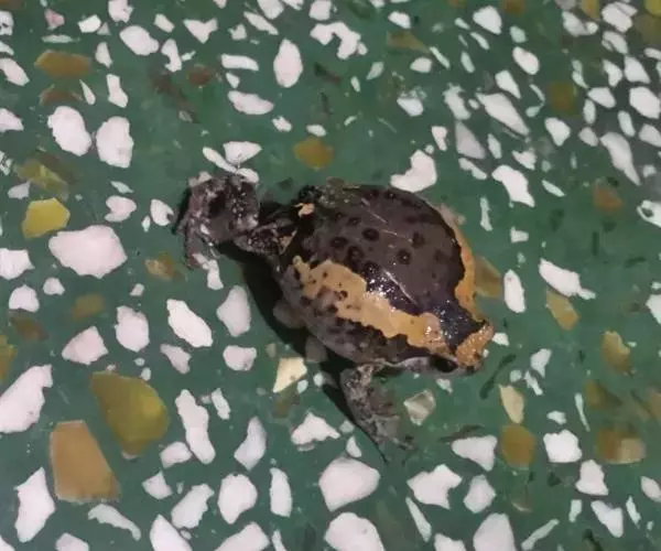 雄性有单咽下外声囊,咽喉部黑色,胸部有一显著之皮肤腺,雄性线极显著。蝌蚪体较扁,头部更扁。口在头前端,无唇齿和角质颌,而为“o”形肉质口缘。眼小,位于头两侧。尾高,尾端尖细。背面呈深棕色。