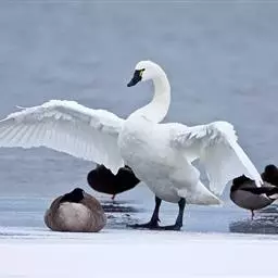 黑嘴天鹅是北美最大的原生鸟类,其体重和形态也是生活在地球上最大的水禽。全身洁白,鸟喙黑色,颈特长,…