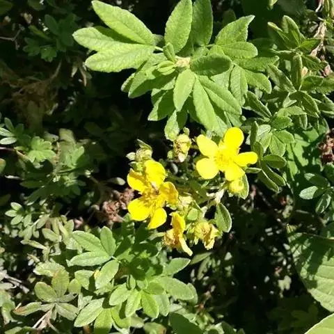 银露梅 Soják)是蔷薇科,金露梅属灌木,高可达2米,树皮纵向剥落。小枝红褐色,羽状复叶,…