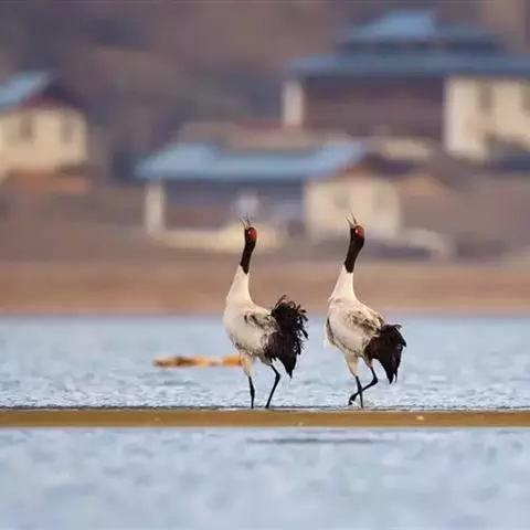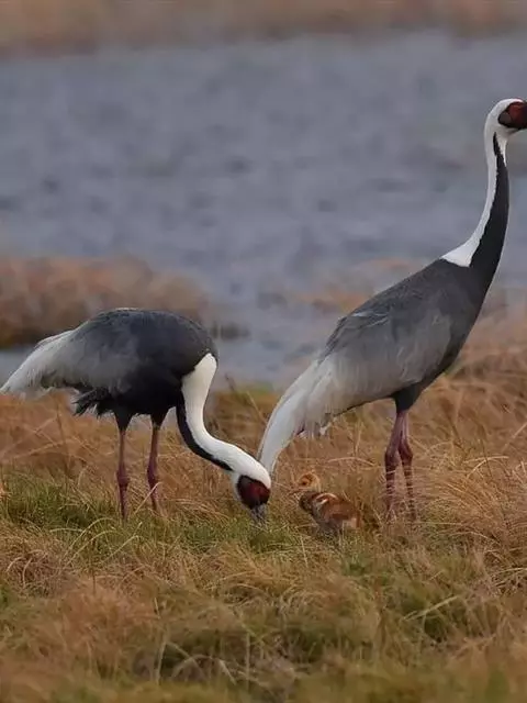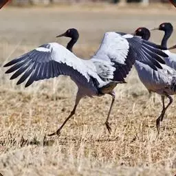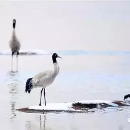 黑颈鹤:是鹤科、鹤属的大型涉禽,体长110-120厘米,体重4-6千克。颈、脚甚长,通体羽毛灰白色,…