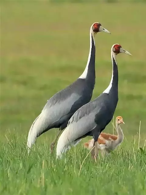 白枕鹤体形与丹顶鹤相似,略小于丹顶鹤,而大于白头鹤。上体为石板灰色。尾羽为暗灰色,…