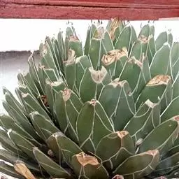 狐尾龙舌兰学名翠绿龙舌兰,又名皇冠龙舌兰和翡翠盘,是天门冬科龙舌兰属的多年生常绿植物,有明显的茎,灰白至灰褐色,叶密生于短茎上,叶片长卵形,叶色翠绿具白粉,叶呈莲座状排列,大而肥厚,肉质,边缘无刺,花排列成大型稠密的顶生圆锥花序,蒴果长椭圆形,室背 3 瓣开裂,种子多数,薄而扁平,黑色。翠绿龙舌兰喜阳光亦稍耐阴,适宜种植在阳光充足和排水良好的地方,主要分布与墨西哥。狐尾龙舌兰植株造型优美,叶片坚挺不易枯萎且不惧烈日,适合户外园艺摆设做为观叶植物,是优良庭园观赏植物,叶可抽取其纤维制作绳索,是重要的纤维作物。