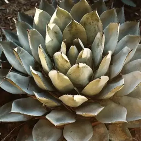 皇后龙舌兰是天门冬科、龙舌兰属多年生草本多浆植物。无主茎,叶丛生,莲座状,株幅40厘米。叶较多,…