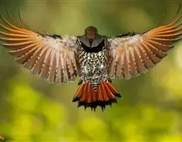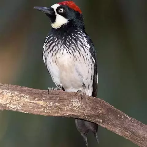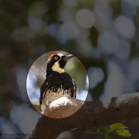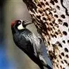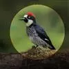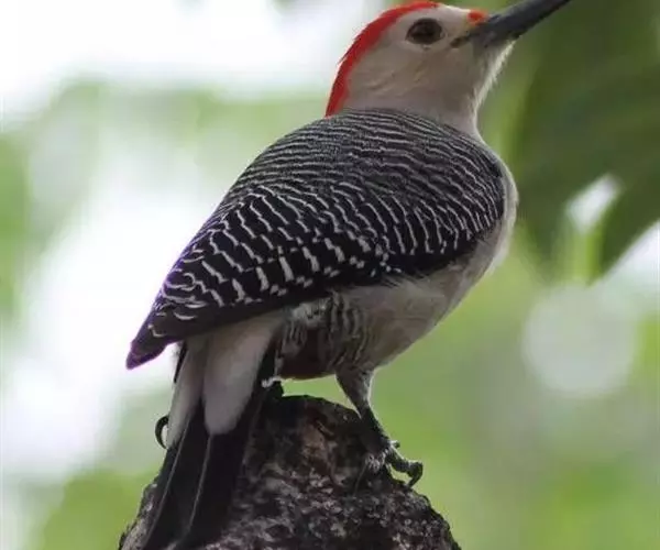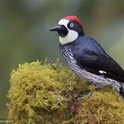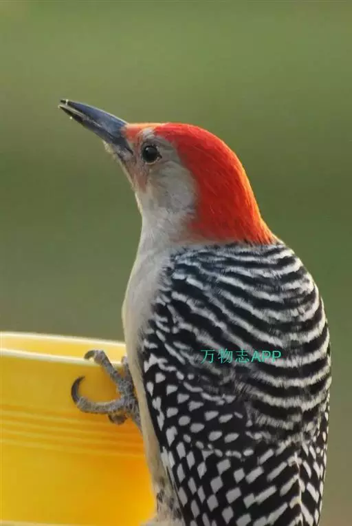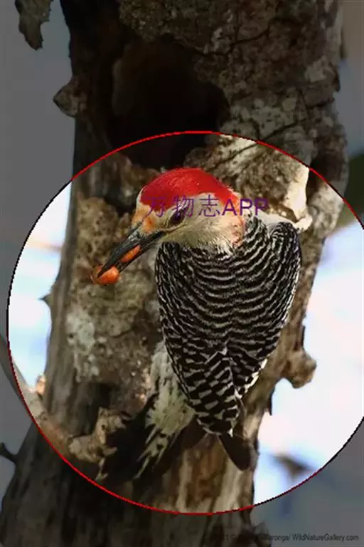 橡树啄木鸟:体长20-23厘米。前额灰黄色,头顶、后颈红色。喉下部、腰和腹部白色,…
