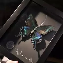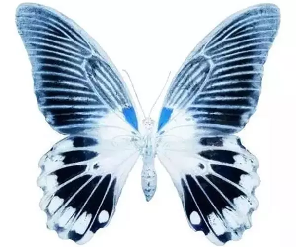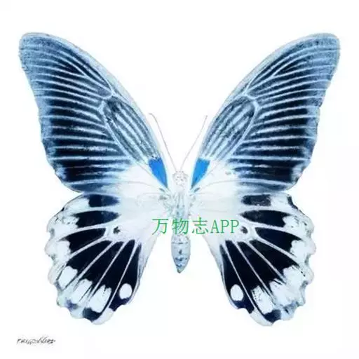 天堂凤蝶翅展可达105mm。前、后翅自基角至后缘约1/2~2/3端为纯净的宝蓝色,后角至后缘1/3…