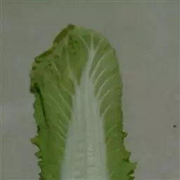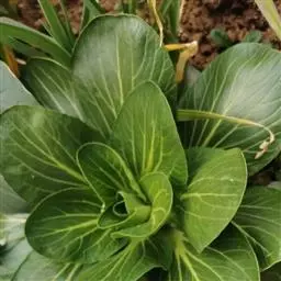植株塌地生长,开展度18厘米。叶片浅绿色,大而厚,叶长10厘米,宽2.5厘米,有18片叶左右。叶缘羽状浅裂,近于全缘,叶面平滑,稍具绒毛,遇低温后叶色转深。