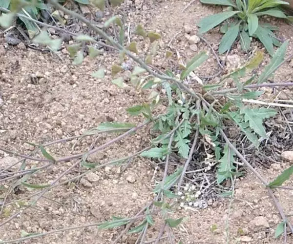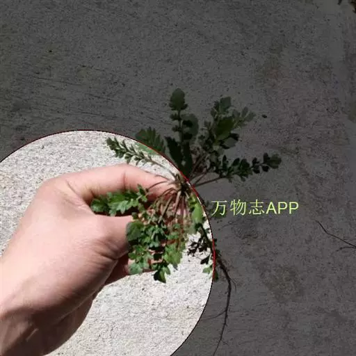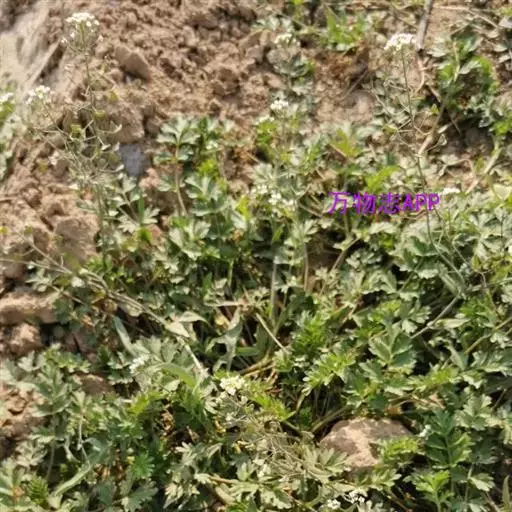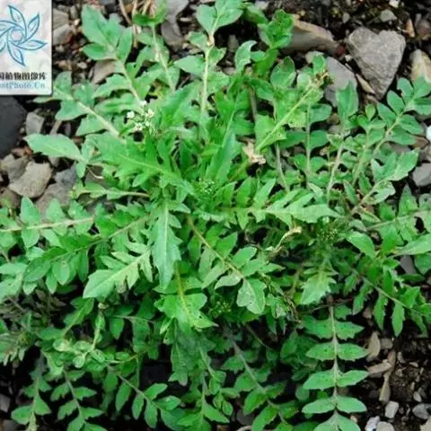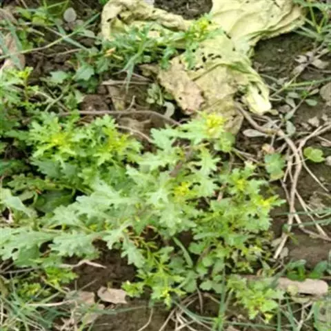 散叶荠菜又叫百脚荠菜、慢荠菜、花叶荠菜、小叶荠菜、碎叶荠菜、碎叶头等。植株塌地生长,开展度18厘米;叶片绿色,羽状全裂,叶缘缺刻深,长10厘米,叶窄较短小,有20片叶左右,绿色,叶缘羽状深裂,叶面平滑绒毛多,遇低温后叶色转深,带紫色。
