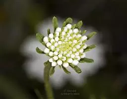 荠菜茎 总状花序顶生及腋生,果期延长达20厘米;花梗长3-8毫米;萼片长圆形,长1.5-2毫米;花瓣白色,卵形,长2-3毫米,有短爪。