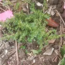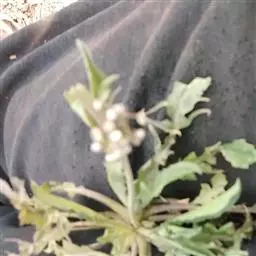 ⑵麻叶(花叶)型荠菜:叶片塌地生长,植株开展度可达15~18厘米,叶片羽状全裂,缺刻深,细碎如飞廉(Carduus crispus L.)叶型,绿色,食用香味较好。
