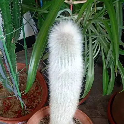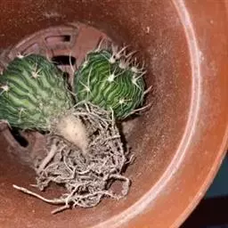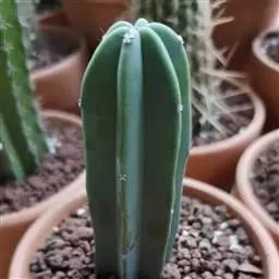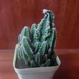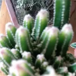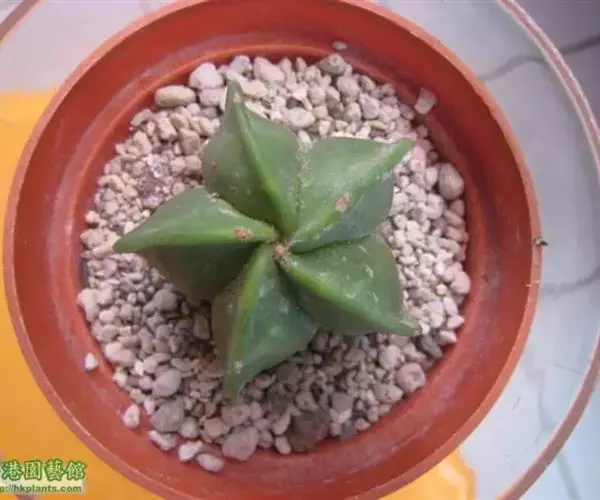 植株球形,老株变为细长筒状。球体直径10~20厘米,有3~9条明显的棱,多数为5棱。棱上的刺座无刺,但有褐色绵毛。球体灰白色密被白色星状毛或小鳞片。花朵着生在球体顶部的刺座上,漏斗形,黄色或有红心。三棱的“三角鸾凤玉”较稀有名贵,四棱的“四角鸾凤玉”也称四方玉,四条阔棱均匀对称,也很有趣。 植株单生,初始圆球形,后长成圆柱状,直径16-18厘米。