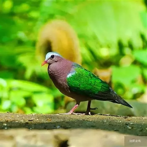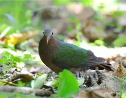 绿背金鸠体长约25厘米,是中等体型、尾甚短的地栖型斑鸠。下体粉红,头顶灰色,额白,腰灰,两翼具亮绿色。…