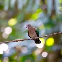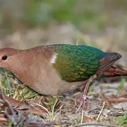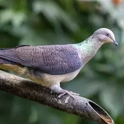 绿皇鸠(学名:Ducula aenea)体形比绿鸠类和果鸠类大,体长36-38厘米,体重508-600克。嘴也较大,嘴基扩张,身体上的杂色通常较少。头部、颈部和下体为鸽灰色,微缀粉葡萄红色,尾下覆羽为暗栗色。前额和额为白色,背部、肩部、腰部、尾上覆羽和翅上覆羽均为亮金属铜绿色或墨绿色,上背和两肩有时还带有紫红色的红铜色光泽,背部和腰部有时还具有黑色的羽端。有的个体的头顶至后颈、以及面颊和耳覆羽呈棕灰色、紫灰色或棕栗色。栖息于平原、河谷和丘陵地带的阔叶林和次生林中,也出现于居民点附近的小块丛林及榕树和橄榄树上。常单个或成对活动,冬天也成群活动。主要以榕果等植物果实为食,特别是乌榄。分布于印度、缅甸、泰国、巴基斯坦、中南半岛、菲律宾和印度尼西亚。