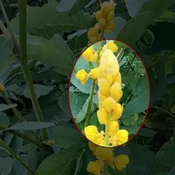 决明(学名:Cassia toraLinn):豆科决明属。一年生亚灌木状草本植物,直立、粗壮、高可达2米。叶柄上无腺体;小叶倒卵形或倒卵状长椭圆形,膜质,顶端圆钝而有小尖头,上面被稀疏柔毛,下面被柔毛;托叶线状,早落。花腋生,常2朵聚生;花梗丝状;萼片稍不等大,卵形或卵状长圆形,膜质,花瓣黄色,花药四方形,子房无柄,荚果纤细,近四棱形,种子菱形,光亮。8-11月开花结果。