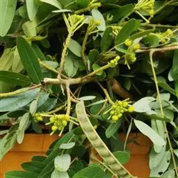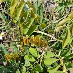 荚果纤细,近四棱形,两端渐尖,长达15厘米,宽3-4毫米,膜质;种子约25颗,菱形,光亮。花果期8-11月。