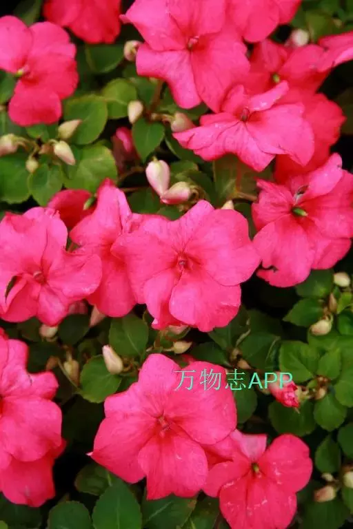 苏丹凤仙花(学名:Impatiens walleriana Hook. f.)也称玻璃翠,凤仙花科,凤仙花属多年生肉质草本植物,高可达70厘米,茎直立,绿色或淡红色,叶互生。总花梗生于茎、枝上部叶腋,2花,花大小及颜色多变化,有鲜红色,深红,粉红色,紫红色,淡紫色,蓝紫色或白色。蒴果纺锤形,6-10月开花。
