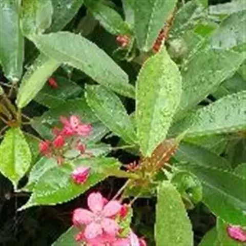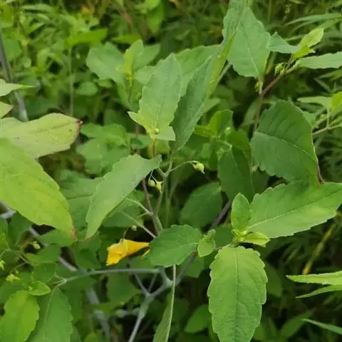 叶互生或上部螺旋状排列,具柄,叶片宽椭圆形或卵形至长圆状椭圆形,长4-12厘米,宽2.5-5.5厘米,顶端尖或渐尖,或突尖,基部楔形,稀多少圆形,狭成长1.5-6厘米的叶柄,沿叶柄具1-2、稀数个具柄腺体,边缘具圆齿状小齿,齿端具小尖,侧脉5-8对,两面无毛。