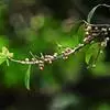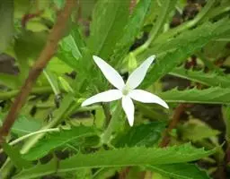 裂叶蓝钟花 叶互生,近革质,其形状、大小和分裂度多变,一般为倒披针形、倒卵状披针形或倒卵形,甚至为菱形,小的叶长仅约7毫米,宽约4毫米,大的叶长达3厘米,宽约1.2厘米,上部有大而钝的粗齿3-7 (9) 枚,基部长楔形或楔形,边缘稍反卷,两面均生短柔毛,下面较密,上面稀疏,后变无毛;具短柄或几无柄。