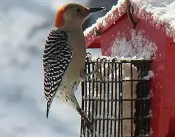 红腹啄木鸟成年雄鸟头项有红帽,翅膀和上体是黑白相间的斑纹状羽毛,腹部有一片红羽毛。头亦大,但颈较长,…