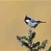 绒啄木鸟,北美洲最小的啄木鸟,白腹黑背和黑项,黑翼上有白色斑点。头部有黑白相间的条纹,尾巴短小,雄…
