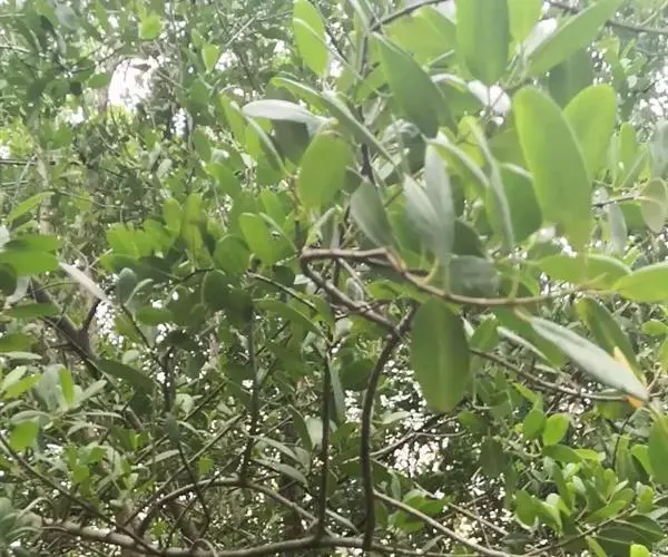 海桑 乔木,树干基部周围很多与水面垂直而高出水面的呼吸根。 高5-6米;小枝通常下垂,有隆起的节,幼时具钝4棱,稀锐4棱或具狭翅。叶形状变异大,阔椭圆形、矩圆形至倒卵形,长4-7厘米,宽2-4厘米,顶端钝尖或圆形,基部渐狭而下延成一短宽的柄,中脉在两面稍凸起,侧脉纤细,不明显;叶柄极短,有时不显著。