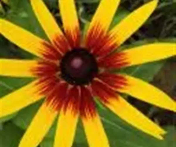 黑心菊菊科金光菊属,一二年生,株高60-100cm,头状花序8-9cm,重瓣花,舌状花黄色,有时有棕色黄带,管状花暗棕色。茎较粗壮,被软毛,稍分枝,具翼。互生叶粗糙,长椭圆形至狭披针形,长10~15cm,叶基下延至茎呈翼状,羽状分裂,5-7裂,茎生叶3-5裂,边缘具稀锯齿。