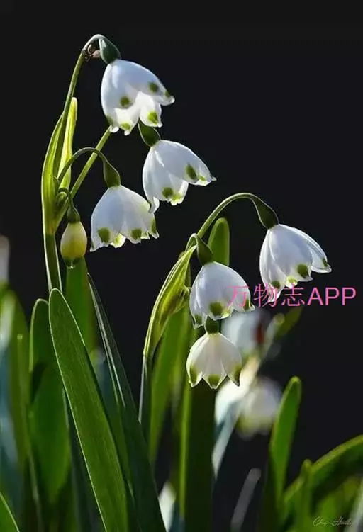 雪花莲在欧洲以报春花而闻名,属水仙花科。在茎的末端两三朵白色的花低垂着,以伞形花序的状态下垂盛开。花的形状和银兰相似,都是呈钟状。在花瓣末端,有绿色的点状花纹,同时散发着淡淡的香气。