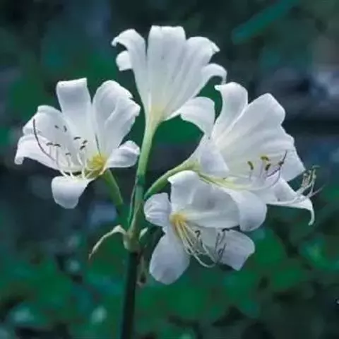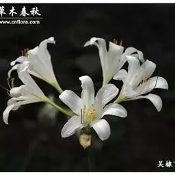 长筒石蒜草本,地生。鳞茎卵球形;叶披针形;伞形花序,有花5-7朵,花白色;花被裂片腹面稍有淡红色条纹,…