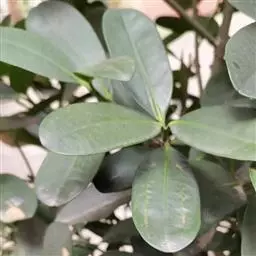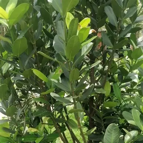 叶片厚革质,具光泽,椭圆形或椭圆状矩圆形,长14-2 5厘米,宽5-10厘米,顶端短渐尖,基部宽楔形或近圆形,中脉两面隆起,侧脉密集,多达40 50对,在边缘内联结;叶柄粗壮,长约2厘米,干时具密的横皱纹。