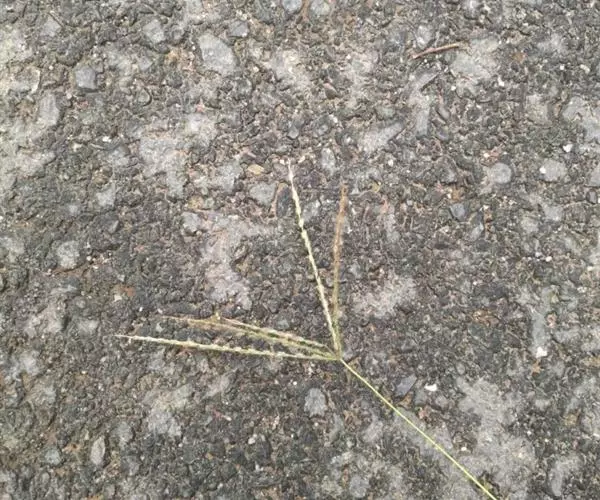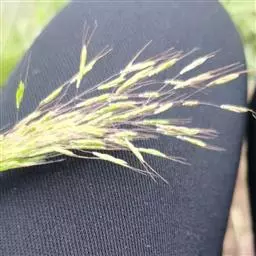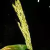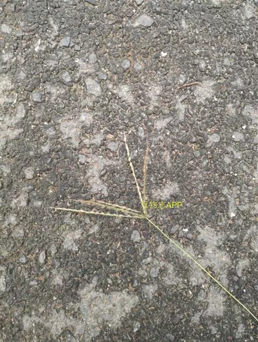 总状花序长5-10厘米,4至10枚呈指状排列于茎顶或散生于长2-4厘米的主轴上;穗轴宽0.5-0.8毫米,边缘微粗糙;小穗椭圆形,长1.5-1.8毫米,宽0.8-1毫米,2至3枚生于各节;小穗柄稍粗糙;第一颖不存在;第二颖稍短于小穗,具3脉,脉间及边缘生柔毛;第一外稃与小穗等长,有5-7脉,脉间及边缘生柔毛;毛壁有小疣突,中脉两侧无毛或毛较少,第二外稃与小穗近等长,中部宽约0.7毫米,顶端尖,有纵行颗粒状粗糙,紫褐色,革质,有光泽;花药长约0.5毫米。