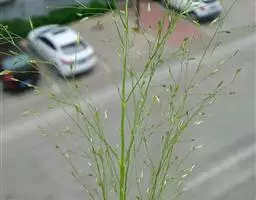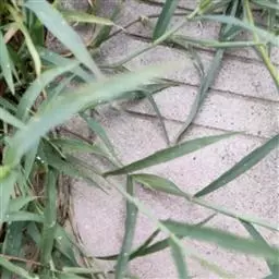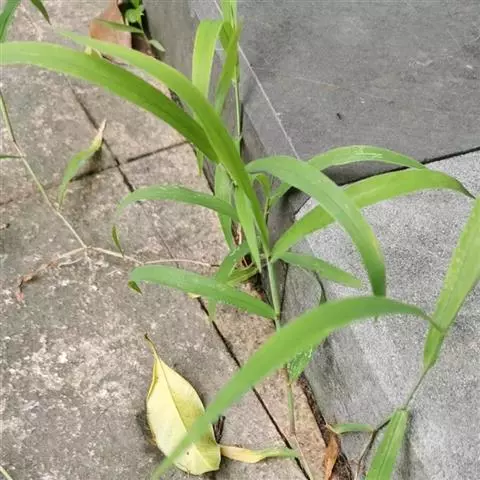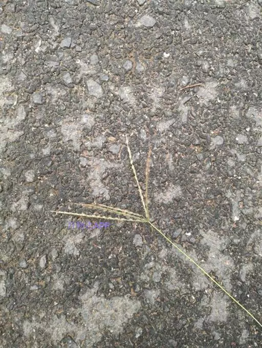 紫马唐,别名:五指草,拉丁文名:Digitaria violascens Link.,是单子叶植物纲、禾本科、马唐属 一年生直立草本。秆疏丛生,基部倾斜,具分枝,无毛。叶鞘短于节间,无毛或生柔毛;叶片线状披针形,质地较软,扁平,粗糙,基部圆形,无毛或上面基部及鞘口生柔毛。边缘微粗糙;小穗椭圆形,小穗柄稍粗糙;第一颖不存在;第二颖稍短于小穗,脉间及边缘生柔毛;脉间及边缘生柔毛;毛壁有小疣突,中脉两侧无毛或毛较少,顶端尖,有纵行颗粒状粗糙,紫褐色,革质,有光泽; 花果期7-11月。