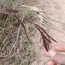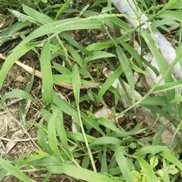 紫马唐 一年生直立草本。秆疏丛生,高20-60厘米,基部倾斜,具分枝,无毛。叶鞘短于节间,无毛或生柔毛;叶舌长1-2毫米;叶片线状披针形,质地较软,扁平,长5-15厘米,宽2-6毫米,粗糙,基部圆形,无毛或上面基部及鞘口生柔毛。