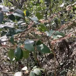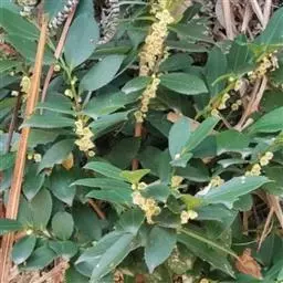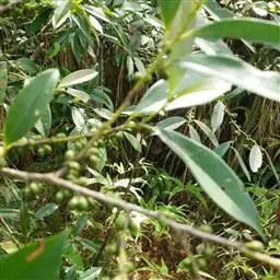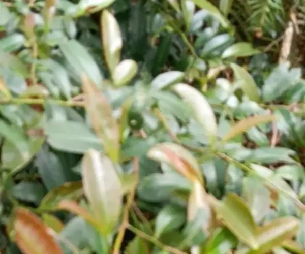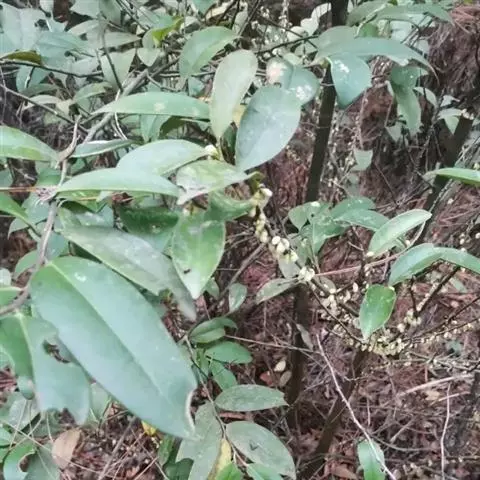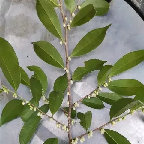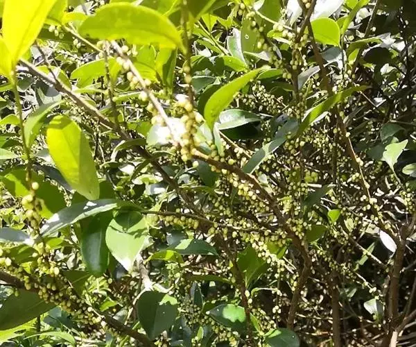 原生形态:灌木,高1-3m.嫩枝有棱,无毛或有疏毛。单叶互生;叶柄长2-5mm;叶片革质,成两列状,椭圆形至圆状披针形,长3-6cm,宽1.5-3cm,先端锐尖或渐尖,微凹,基部楔形,边缘具钝齿,上面深绿色,下面黄绿色,两面均无毛,主脉在上面下陷,侧脉不明显。花单性,雌雄异株,常1-3朵簇生于叶腋和枝侧;花梗短,下垂;萼片5,近圆形,宿存;花瓣5,白色或黄绿色,卵形,基部连合;雄花的雄蕊多数,短于花瓣,退化子房有或无;雌花无雄蕊,花柱短,先端3浅裂。浆果圆球形,径约5mm,成熟时紫黑色。花期8月底至12月底。