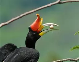 犀鸟 犀鸟吃东西时,往往先用嘴将食物向上抛起,然后在用嘴准确地接住,吞下食物。