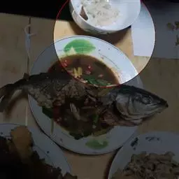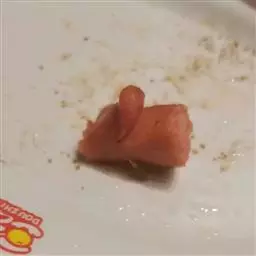 ⒊浇上调味汁。要是洒些香菜会更漂亮,可惜家里没有了。