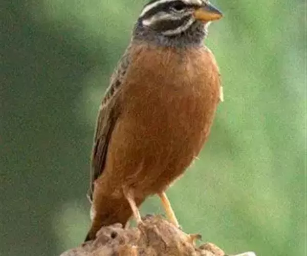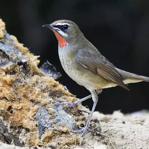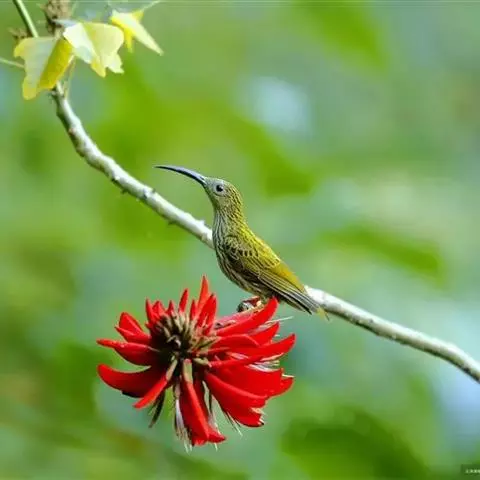 红腰朱雀:体长12-14厘米,小型鸟类。雄鸟前额和眉纹玫瑰粉红色,头顶和一宽的贯眼带深红褐色,背红…