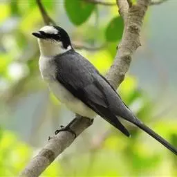 灰山椒鸟:体长18-20厘米。上体灰色或石板灰色,两翅和尾黑色,翅上具斜行白色翼斑,外侧尾羽先端白色。…