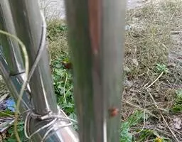刚竹属乔木或灌木状竹类。 竿高6米,粗3-4厘米,幼竿绿色(基部数节间常为暗紫带绿色)被以渐变厚的白粉,光滑无毛;中部节间长约20厘米,壁厚4毫米;竿环微隆起与箨环同高。