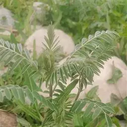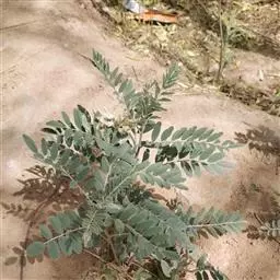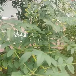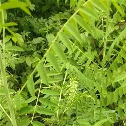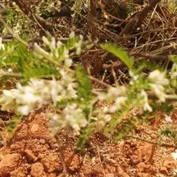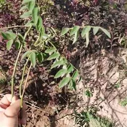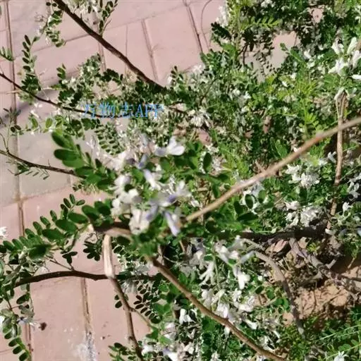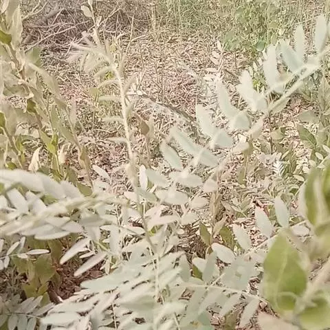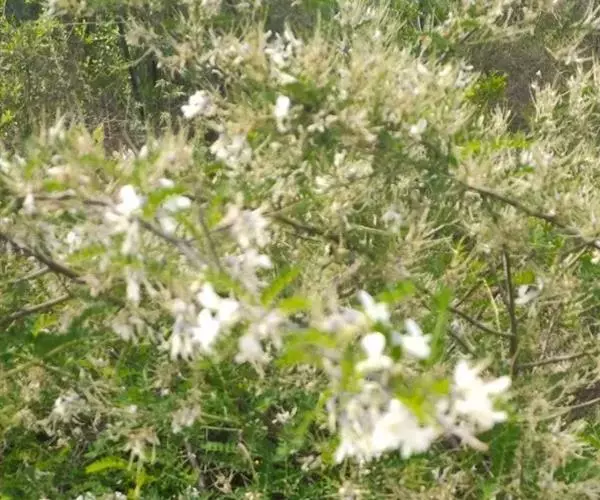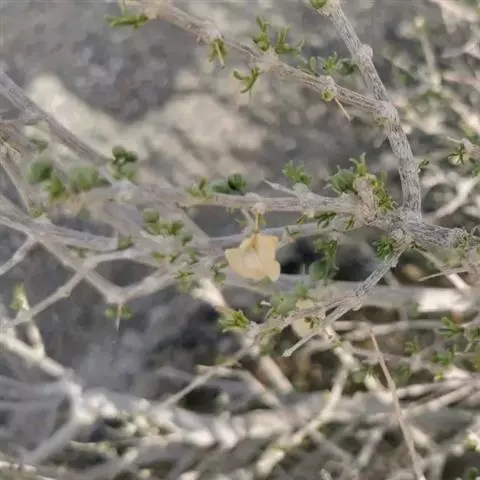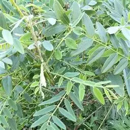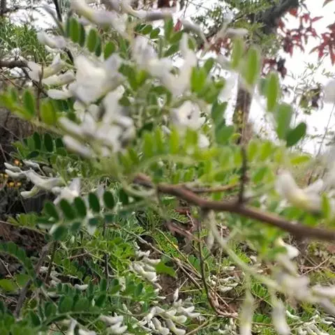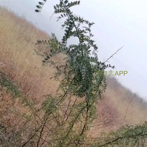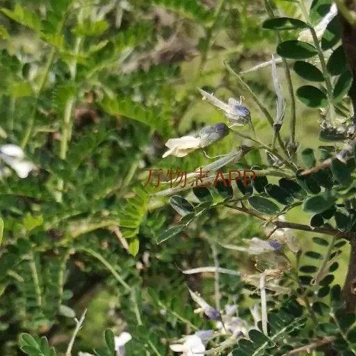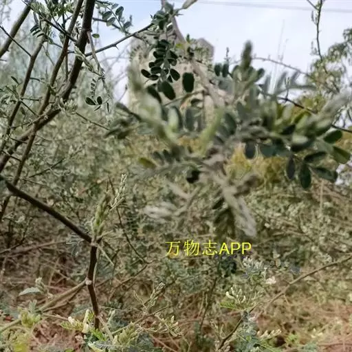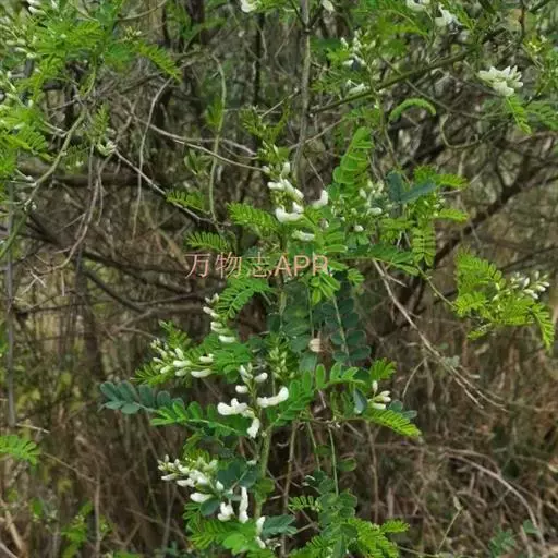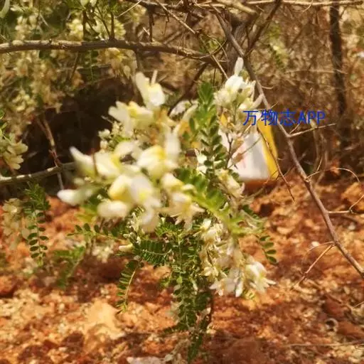 白刺花 灌木或小乔木,高1-2米,有时3-4米。枝多开展,小枝初被毛,旋即脱净,不育枝末端明显变成刺,有时分叉。羽状复叶;托叶钻状,部分变成刺,疏被短柔毛,宿存;小叶5-9对,形态多变,一般为椭圆状卵形或倒卵状长圆形,长10-15毫米,先端圆或微缺,常具芒尖,基部钝圆形,上面几无毛,下面中脉隆起,疏被长柔毛或近无毛。