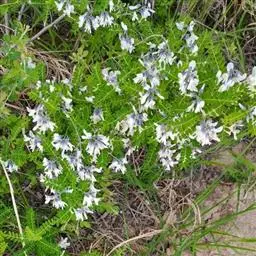 白刺花(学名:Sophora davidii (Franch.) Skeels)是豆科,槐属灌木或小乔木,高可达2米,枝多开展,羽状复叶;托叶钻状,宿存;小叶片形态多变,一般为椭圆状卵形或倒卵状长圆形,上面几无毛,下面中脉隆起,总状花序着生于小枝顶端;花小,花萼钟状,蓝紫色,萼齿圆三角形,花冠白色或淡黄色,旗瓣倒卵状长圆形,柄与瓣片近等长,翼瓣与旗瓣等长,倒卵状长圆形,龙骨瓣比翼瓣稍短,镰状倒卵形,子房比花丝长,荚果非典型串珠状,种子卵球形,深褐色。3-8月开花,6-10月结果。