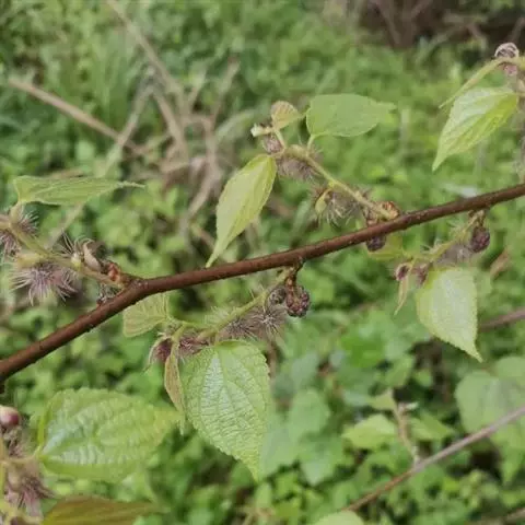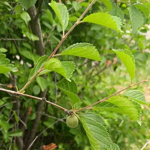 小乔木,高3-5米,稀达15米,枝条稀疏;小枝细长,圆柱形,无毛或近于无毛,紫褐色或黑褐色,疏生长圆形皮孔;冬芽长圆锥形,先端渐尖,具浅褐色鳞片,鳞片边缘有柔毛。叶片卵形或长椭圆形,长4-7厘米,宽2.5-3.5厘米,先端急尖,基部圆形,稀近心形或宽楔形,通常在中部以上有细锐锯齿,基部全缘,幼时下面沿中脉和侧脉被绒毛或柔毛,老时脱落无毛;叶柄长1-2.1厘米,偶有散生柔毛;托叶披针形,早落。