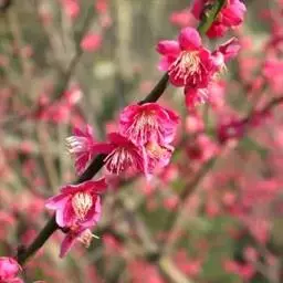 朱砂梅,俗称骨里红,为真梅系直脚梅类,枝条直伸或斜展,不下垂成拱形也不弯曲。属蔷薇科李属植物,…