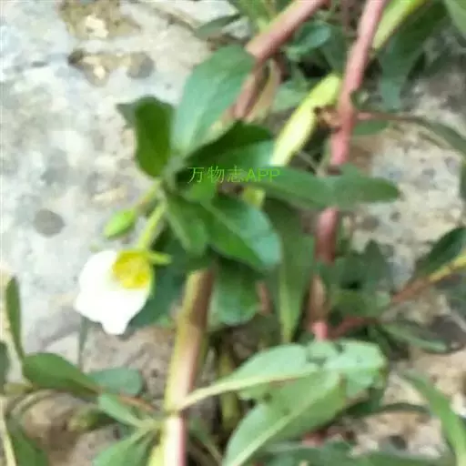 多年生草本,通常匍匐于水田中或浮出水面,全株无毛。茎圆柱形,基部匍匐状,由节部生出多数须根,上升茎高约30cm。叶互生,长圆柱状倒披针形至倒卵形,长3~7cm,宽1-2cm,全缘,先端钝形或稍尖,羽状脉明显,基部狭窄成柄,两侧具有小而似托叶的腺体。