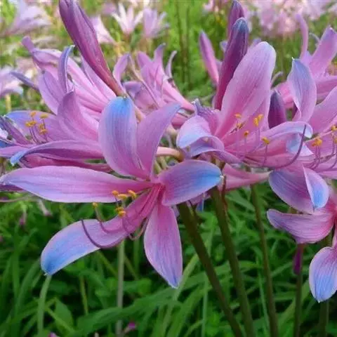 换锦花是石蒜科石蒜属的多年生草本植物。鳞茎为卵形;早春出带状绿色叶;伞形花序有花,为淡紫红色,…