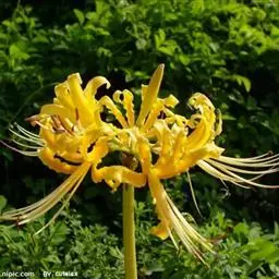 中国石蒜草本,地生。植株无毛,叶带状,顶端圆;伞形花序,花黄色;花被裂片背面具淡黄色中肋,倒披针形…