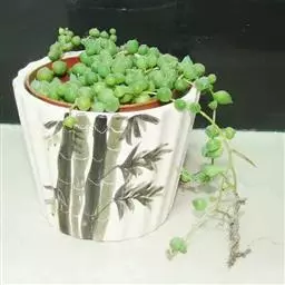 翡翠珠,是菊科千里光属的多年生常绿肉质草本植物。茎纤细,全株被白色皮粉;叶互生,较疏,圆心形,深绿色,…