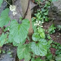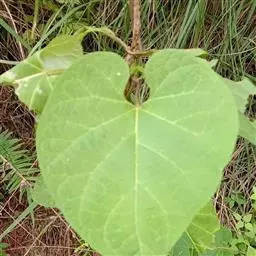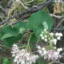 多年生草质藤本;块根粗壮;茎的幼嫩部分被两列柔毛。叶薄纸质,除脉上被毛外无毛,卵形或卵状长圆形,长4.5-8厘米,宽3.5-6厘米(最大的20 × 10厘米),顶端短尖,基部心形,叶面深绿色,叶背苍白色;侧脉约5对。伞房状或总状聚伞花序腋外生,着花约20朵;花萼被柔毛,5深裂;花冠绿白色,近辐状;副花冠大形,杯状或高钟状,顶端具10齿,5个圆形齿和5个锐尖的齿互生;花粉块每室1个,下垂。蓇葖大形,纺锤状,具弯刺,向端部渐尖,中部膨胀,长9-12厘米,中部直径2-3厘米;种子卵形,长约7毫米;种毛白色绢质,长3厘米。花期5-10月,果期8月-翌年1月。