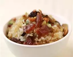 糯米淘洗干净后,浸泡一晚上后,控干水分,上笼蒸约40分钟;紫菜和虾米泡软,并将紫菜切成细末。